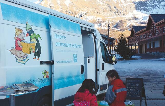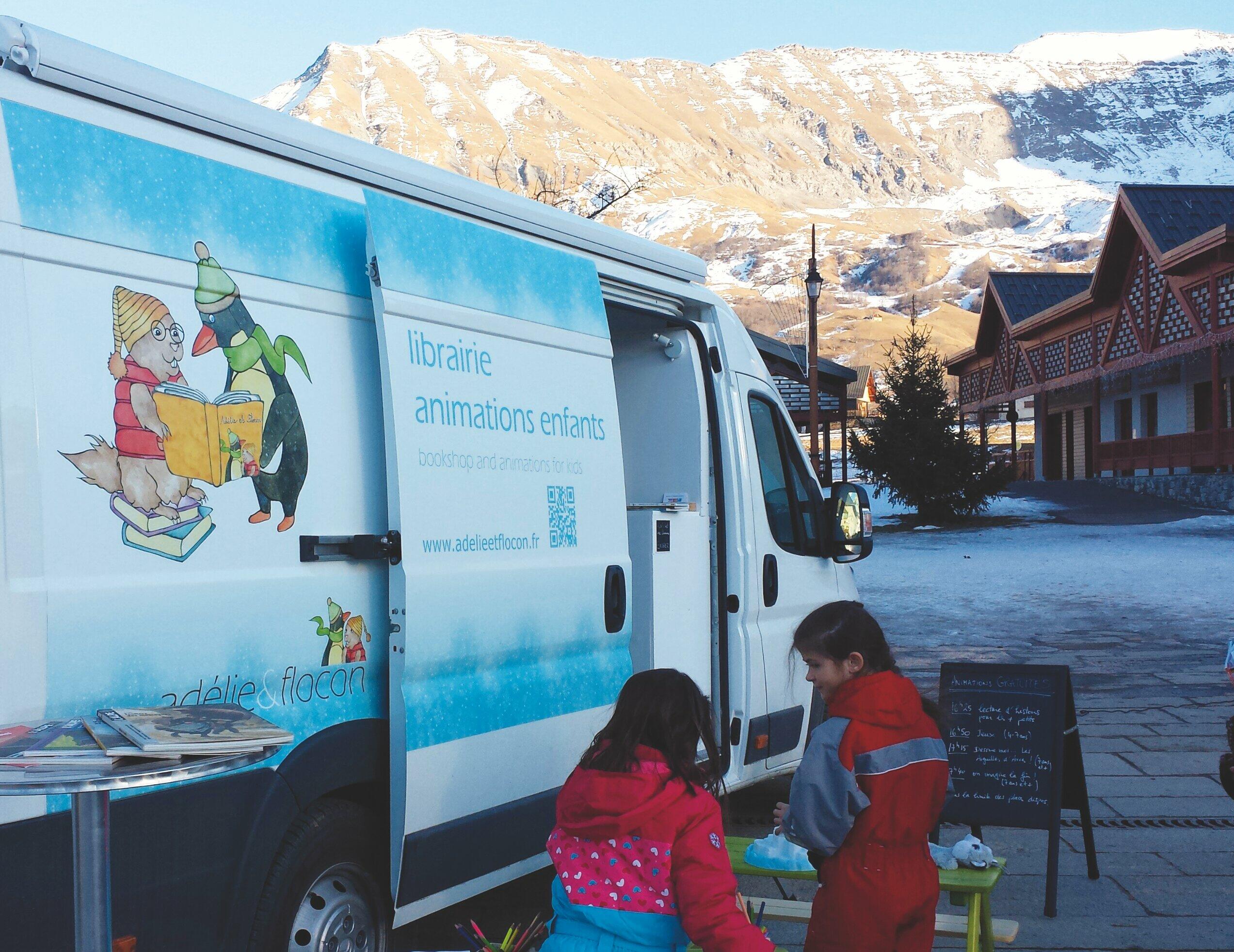 Après le Mokiroule, il y a moins d’un an en Ardèche, la librairie ambulante Adélie & Flocon, lancée à la mi-décembre, emprunte les routes de Savoie et de Haute-Savoie. Sillonnant stations de ski, notamment pendant les vacances scolaires, et gros villages des vallées des massifs des Bauges, de la Tarentaise ou de la Maurienne, sa fondatrice, Laure Delaby, conjugue, comme pour le Mokiroule, "un métier créé sur mesure" et "la volonté d’apporter le livre là où il n’est pas forcément et de le faire vivre". Spécialisée en jeunesse et centrée sur la montagne et les régions polaires, Adélie & Flocon propose, outre 800 références de livres, de multiples animations comme les lectures, les ateliers d’écriture, de dessin ou d’origami d’une durée moyenne d’une demi-heure. Pour compléter son activité, Laure Delaby espère, dès la rentrée 2016, pouvoir travailler avec les écoles, et démarche également les maires de communes isolées qui ne disposent pas de point de vente de livres. Plus qu’une entreprise, la librairie ambulante correspond à un projet de vie pour la toute fraîche trentenaire, qui a lâché sa vie parisienne et sa carrière dans le groupe Yves Rocher pour monter ce projet, financé entièrement grâce à ses économies, soit 60 000 euros.