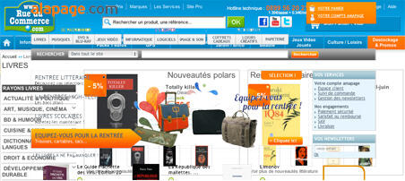 Après avoir racheté Alapage à France Telecom en juin 2009, Rueducommerce.fr avait conclu en septembre de la même année un “partenariat stratégique” avec le groupe de librairies Decitre. Ce dernier était, et reste donc chargé du référencement, de la gestion du catalogue, de l'approvisionnement et de la gestion des stocks de livres du site de vente en ligne.
