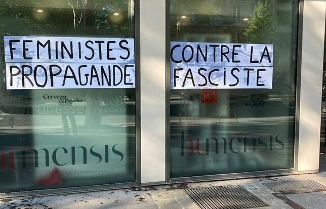 Le jour de la sortie de l'ouvrage, mercredi 30 avril, les locaux des PUF ont en effet été visés par des collages et pochoirs. Des inscriptions telles que « Féministes contre la propagande fasciste » ont été apposées sur les vitrines de la maison d’édition, tandis que des pochoirs « Féministes woke fières » et « PUF + Stérin = cœur » ont été retrouvés sur le trottoir, selon des photos relayées sur les réseaux sociaux.