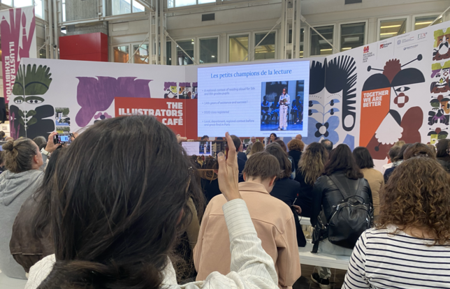 Gaia Stock, membre du comité jeunesse du Syndicat des éditeurs italiens (AIE) et déléguée de la section italienne de l'International Board on Books for Young People (Ibby), a présenté « Il Libro che Vorrei » (Le livre que je voudrais), campagne nationale de promotion de la lecture portée par l'AIE. Le mécanisme est simple : pendant dix jours en novembre, chacun peut entrer dans une librairie et offrir un livre à une école partenaire. Les éditeurs abondent le dispositif par des dons directs.