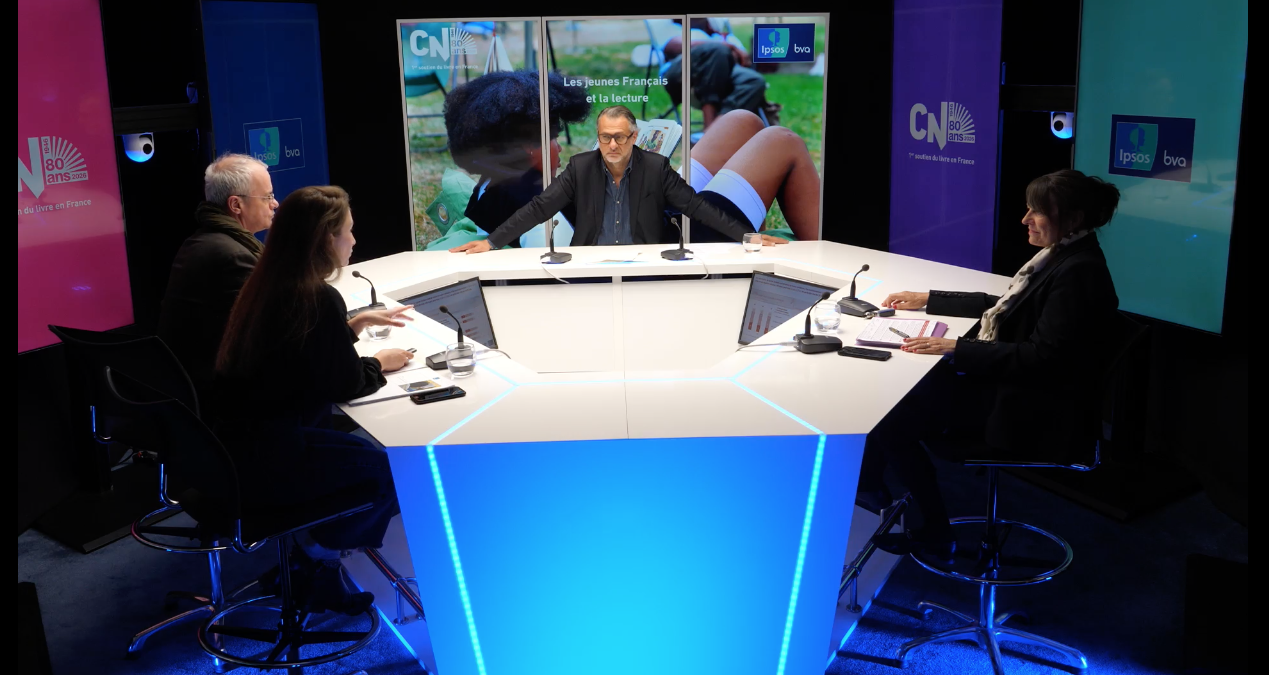Capture d'écran du live « Les jeunes Français et la lecture », édition 2026. Alice Tétaz, Etienne Mercier, David Abiker, Régine Hatchondo - Photo DR