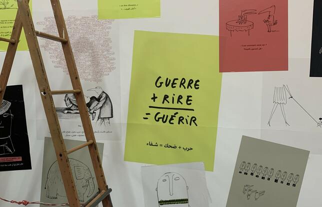 Vernissage annulé mais exposition réussie pour Mais fichez-nous la paix, une exposition interactive et bilingue sous-titrée « L’amour, l’humour, la guerre, la paix » de l’illustrateur français Serge Bloch et du stand upper libanais Chaker Bou Abdalla. Paradoxalement, un adverbe familier au Liban, si l’inauguration dans les espaces culturels de l’ambassade est reportée, l’exposition est bel et bien ouverte aux publics jusqu’à juin.