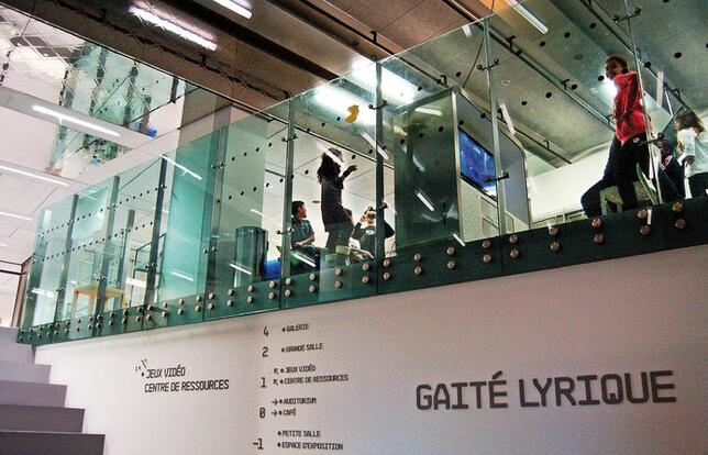 Depuis le 1er mars 2011, il existe à Paris un petit paradis pour le "gamer" : l'espace jeux vidéo de la Gaîté lyrique. Dans ce vénérable bâtiment datant de 1862, aujourd'hui dédié par la volonté municipale aux cultures numériques, cet espace offre 6 jours sur 7 (du mardi au dimanche) et de 14 h à 20 h un accès gratuit, sans formalités et sans limitation de durée, à 5 postes équipés chacun d'un grand écran, 15 consoles et 6 consoles portables. Mais il ne s'agit pas là d'une simple salle de jeu. Ce lieu, de même que le centre de ressources auquel il est adossé, participe activement à la diffusion autour de la création numérique et des nouvelles technologies. Si la majorité du public est constituée par des enfants qui viennent à la sortie de l'école et de jeunes adultes, des animations organisées régulièrement, comme le "Game older" qui propose une initiation pour le public senior, visent à élargir l'audience. En cet après-midi du début de mai, dans l'espace jeux vidéo, un père dispute une partie avec ses deux fils. A côté d'eux, des adolescents se sont installés devant une console. "Nous ne voulions pas faire une simple mise à disposition. Nous proposons une sélection thématique renouvelée chaque semaine en lien avec les expositions », explique Oscar Barda, responsable du centre de ressources, qui accueille aujourd'hui une classe de collégiens auxquels il fait découvrir toutes les étapes de la création d'un jeu vidéo. Son expertise, ce jeune trentenaire la partage aussi assidûment avec les professionnels des bibliothèques, de plus en plus nombreux à observer avec attention l'expérience du centre de ressources de la Gaîté lyrique.
