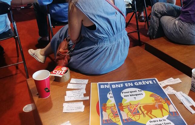 Le mouvement de grève des personnels de la BNF, initié au début du mois de mai, est relancé. Mercredi 15 juin, lors d'une conférence de presse en présence des écrivains Éric Vuillard et Laurent Binet, des chercheurs Arlette Farge, Yohann Chapoutot et Daniel Kunth, l'intersyndical CGT-FSU-SUD Culture des personnels de la BNF et l'Association des lecteurs et usagers de la BNF (Alu BNF) ont déclaré deux nouvelles journées de grève pour jeudi 23 et vendredi 24 juin. Le dépôt d'un préavis de grève courant jusqu'au 31 juin a aussi été annoncé.