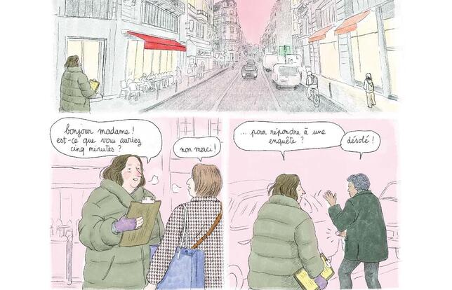 Cosy mystery. Illustratrice de livres jeunesse, Cati Baur a été particulièrement remarquée pour son adaptation en bande dessinée de la série Quatre sœurs de Malika Ferdjoukh (Rue de Sèvres, 2014-2017). Mais elle est aussi l'autrice d'une poignée d'albums personnels sensibles et gracieux, mettant souvent en scène des protagonistes en plein questionnement existentiel, cherchant à reprendre leur vie en main. L'héroïne de son nouveau roman graphique, Marcie, n'y déroge pas. Marcie, à l'aube de la cinquantaine, vit seule avec sa fille adolescente Emma. Après s'être fait licencier de façon brutale et humiliante, elle doit accepter une proposition de Pôle emploi bien loin de son expérience et de ses compétences. Volontaire et pleine de peps, Marcie décide cependant qu'il est temps pour elle de réaliser son rêve d'enfant : devenir détective pour la célèbre agence Dulac. Au culot, sans qualification ni prédisposition particulières pour le job si ce n'est son apparence de madame Tout-le-Monde qui lui permet de passer inaperçue, la miss Marple en herbe est embauchée à l'essai pour retrouver des chiens disparus, ce à quoi elle excelle d'emblée. Un soir, au cours d'une planque, elle est témoin de la défenestration d'une jeune Américaine. Contrairement à la police qui penche pour le suicide, Marcie trouve l'affaire suspecte. Elle est vite engagée par les parents de la jeune fille pour mener l'enquête, qui va l'entraîner avec Emma jusqu'à New York.