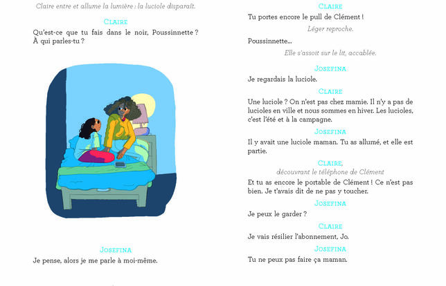 On n'oublie pas l'été de ses 16 ans. L'âge où tout est possible. Ou impossible, c'est selon. Flavien appelle Clément, mais la sonnerie résonne dans le vide. Pourtant Clément est là, à côté, dans la chambre de Josefina, sa petite sœur. Pourquoi ne répond-il pas alors que sa mémoire et sa rétine sont encore éblouies par le bel été passé avec Flavien ? L'espiègle Josefina, qui a le don de faire apparaître son frère, le taquine à propos de son histoire et cache le téléphone dans son dos. Malgré la légèreté et la désinvolture propres à toute jeunesse, dès le début on sent que quelque chose cloche. On devine entre les lignes que le véritable thème n'est pas l'amour, ni même la relation frère/sœur mais la place laissée par les êtres chers qui ont disparu. Que faire des souvenirs lourds à porter ? Quand Clément voudrait résilier le forfait de son téléphone plein de photos du bel été perdu et mettre à la casse son vieux scooter resté au garage, Josefina, elle, veut continuer d'écouter la musique préférée de son frère, commenter ses selfies et porter son pull. Entre réel et imaginaire, Christophe Pellet invite dans ses dialogues ciselés les vivants, tous les vivants, animaux compris, mais aussi les fantômes. Le renard des neiges collé sur le portable s'exprime au même titre que la luciole, « une étoile tombée par terre ». Le texte est comme brumisé dans une atmosphère poétique et apaisée où les disparus ne le sont jamais totalement. Entre autres pouvoirs, les mots de Christophe Pellet ont aussi celui d'adoucir le chagrin de la perte.