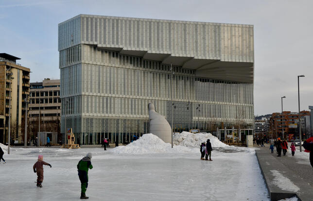 Oslo, dans le quartier Bjørvika, entre la gare, des statues et l'Opéra, quinze degrés sous zéro adoucis par le soleil. Des enfants s'amusent à glisser sur l'eau gelée. L'été, s'y reflète un bâtiment de cinq étages constitué d'une enfilade de hautes vitres, comme des tranches de livres en transparence. C'est la bibliothèque centrale de la capitale norvégienne, désignée en 2021 par la Fédération internationale des associations de bibliothécaires (l'Ifla) comme la meilleure du monde.