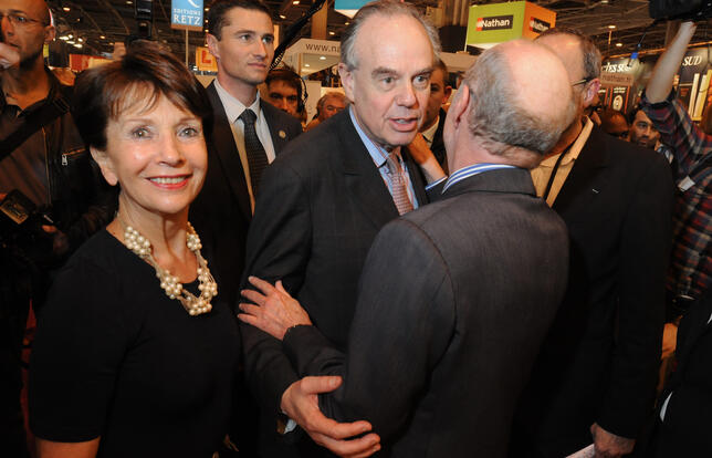 Nicole Lattès lors de l'inauguration du salon du livre de 2012 avec le ministre Frédéric Mitterand et de dos Leonello Brandolini. - Photo Olivier Dion