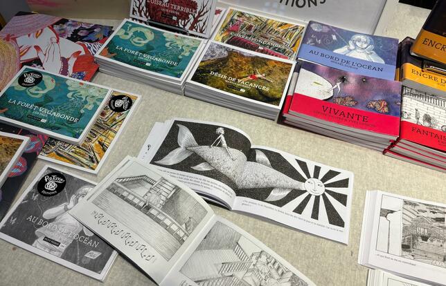 L’éditeur a aussi exploré d’autres formats et collections comme « Des cases, des langues, des mondes », convaincu que « la bande dessinée, ce n’est pas juste du texte dans des bulles sur des images. C’est un mariage entre le texte et l’image qui peut être différent à chaque fois. »