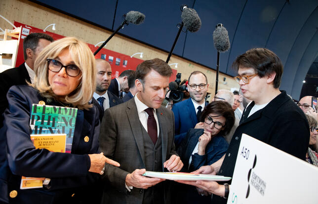 Cette visite de 90 minutes, qui n’avait pas été annoncée, a permis au chef de l’État de rencontrer plusieurs éditeurs et porteurs de projets éditoriaux et de lancer sa ministre sur le dossier du livre d’occasion.