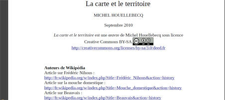 Première page de la version téléchargeable en accès libre de La carte et le territoire