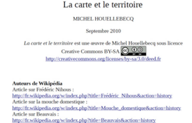Le directeur général des éditions Flammarion, Gilles Haeri, a annoncé « entreprendre des démarches juridiques » contre les blogueurs ayant mis La Carte et le territoire de Michel Houellebecq en libre accès sur Internet, rapporte le journal en ligne Rue 89. Cela vise expressement Florian Gallaire, qui diffuse gratuitement le dernier prix Goncourt. 134 pages en format pdf.