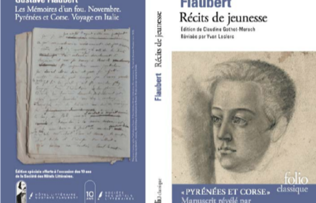 Un volume spécial des Récits de jeunesse de Gustave Flaubert est à paraître le 1er juin chez Gallimard en Folio Classique. Outre des éditions déjà connues des Mémoires d'un fou et de Voyage en Italie, l'ouvrage rassemble une version tirée du manuscrit originel et corrigé de Pyrénées et Corse, retrouvé par Jacques Letertre, président de la société des Hôtels littéraires, et une version également originelle et corrigée de Novembre, dont le manuscrit a été préempté par la Métropole Rouen Normandie pour le Musée Flaubert.
