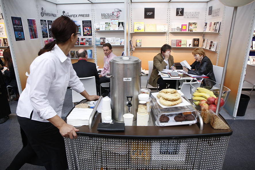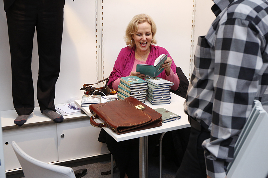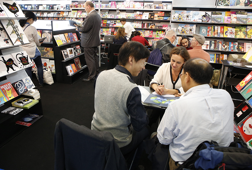 Sur le stand du Bief, la responsable des droits Sabine Louali pour la maison d’édition Les Grandes Personnes. - Olivier Dion -