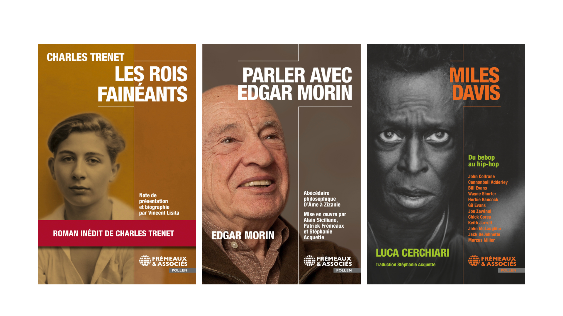 Un roman inédit de Charles Trénet, une biographie de Miles Davis, un abécédaire philosophique d’Edgar Morin… « Frémeaux-Pollen », la nouvelle collection de Frémeaux & Associés, entend explorer différents domaines artistiques, liés aux sciences humaines avec une approche qui met à l'honneur la transversalité. La maison prévoit six à huit nouveautés par an avec un tirage entre 1 400 et 3 000 exemplaires.