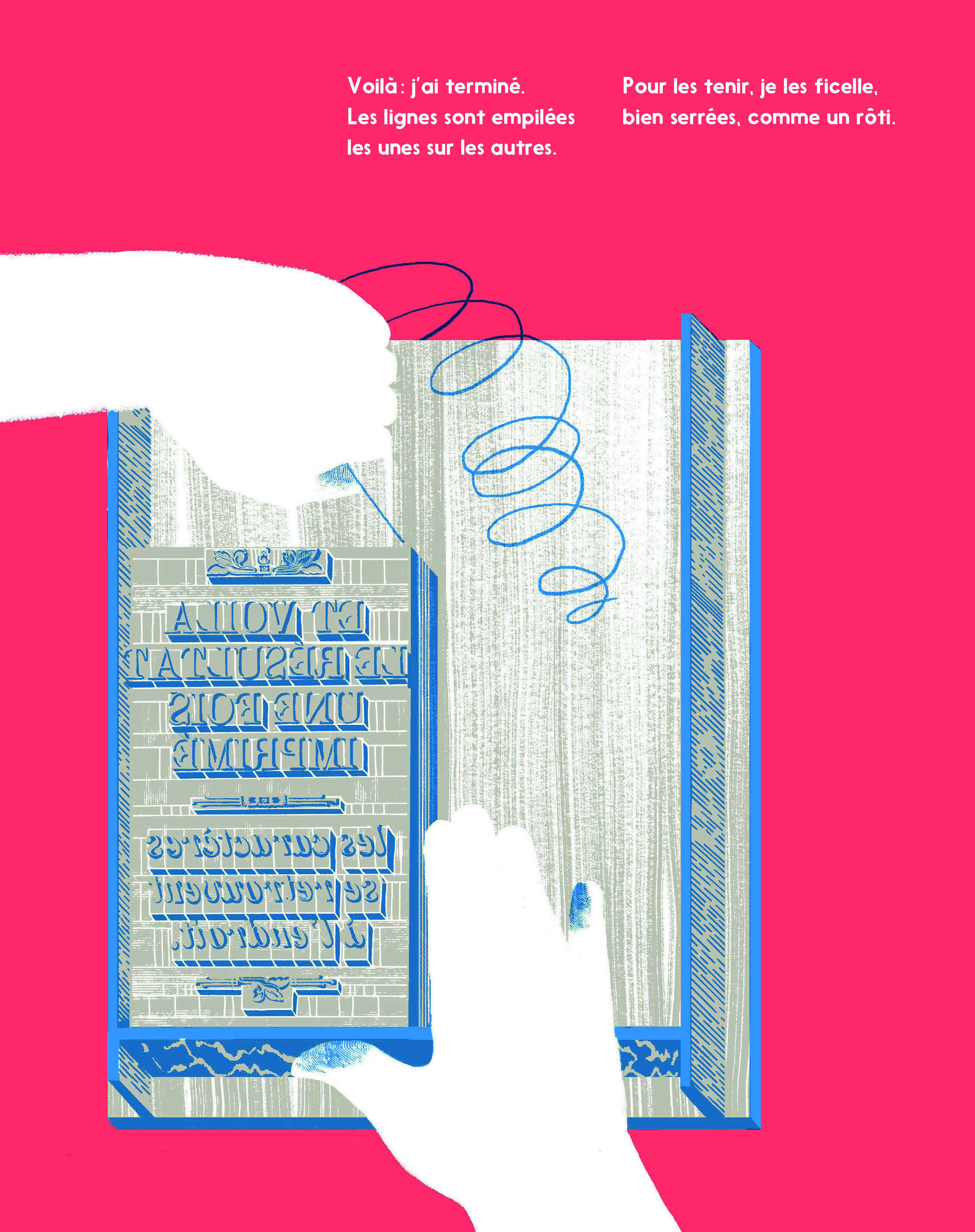 Les lettres, vous les préférez brisées ou arrondies ? Allongées ou scriptes ? Avec ou sans empattements ? D'où vient l'expression « bas de casse » ? Savez-vous que la personne qui compose dans un atelier de typographie s'appelle, dans l'argot professionnel, un « singe » ? Avant de nous faire entrer dans l'atelier du typographe, cet album documentaire nous raconte les origines du métier bien avant Gutenberg, des tablettes d'argile de Mésopotamie aux papyrus égyptiens. Bi Sheng, un Chinois du XIe siècle, est le premier à avoir eu l'idée de sculpter chaque signe de l'écriture chinoise sur un petit cube d'argile. Quatre siècles plus tard, ignorant tout de la découverte de ce dernier, Gutenberg, en Allemagne, a le même projet de fabriquer des caractères en plomb. Pour sa presse d'imprimerie, il s'inspire des pressoirs des vignerons et, en 1455, il achève sa légendaire Bible. Forts de cette histoire, il ne nous reste qu'à enfiler un tablier et à pénétrer dans l'antre fascinant de l'atelier du typographe. On découvre d'abord tous les caractères en plomb rangés dans les cassetins puis, après les avoir empilés les uns sur les autres en ayant bien pris soin de les placer à l'envers, on applique dessus une couche épaisse d'encre. Puis on place le papier et hop ! On n'a plus qu'à tirer la presse avant de lire le texte déposé sur la feuille. Avec ses illustrations aux tons francs et ses explications claires, Gaby Bazin nous initie à un métier qui continue de nous intriguer malgré l'avènement de l'ère numérique...