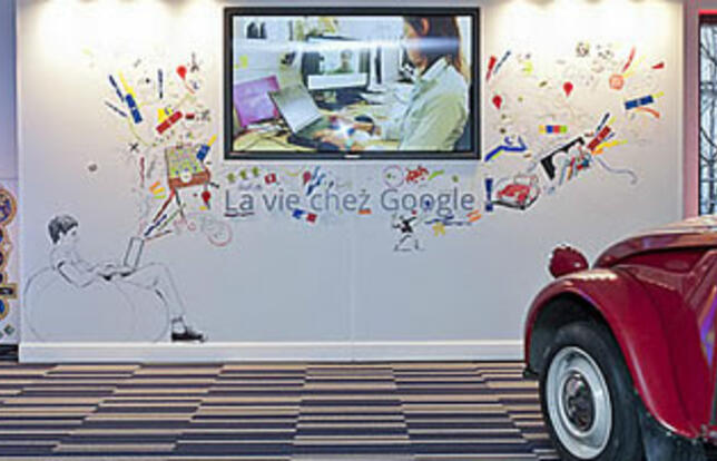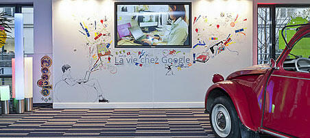 La 2CV Citroën deviendra-t-elle le symbole du “Googleplex” français ? Un exemplaire de cette automobile trône en effet au milieu d'un grand open space au premier étage du nouveau siège de Google à Paris, et sur la plupart des photos qui illustrent l'inauguration des lieux.