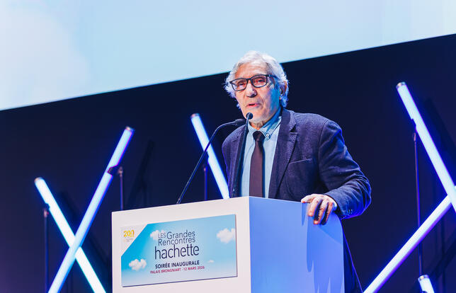 Le palais Brongniart a accueilli jeudi soir la soirée inaugurale des Grandes Rencontres d'Hachette, festival littéraire organisé du 13 au 15 mars pour marquer le bicentenaire du groupe, devant quelque 400 personnalités du monde du livre (Vincent Montagne, président du SNE, Marion Glénat, Gilles Haéri directeur général d'Albin Michel qui représentaient les maisons partenaire du groupe, invitées à l'événement), mais aussi du monde politique (Nicolas Sarkozy, Jordan Bardella ou Marion Maréchal publiés chez Fayard).