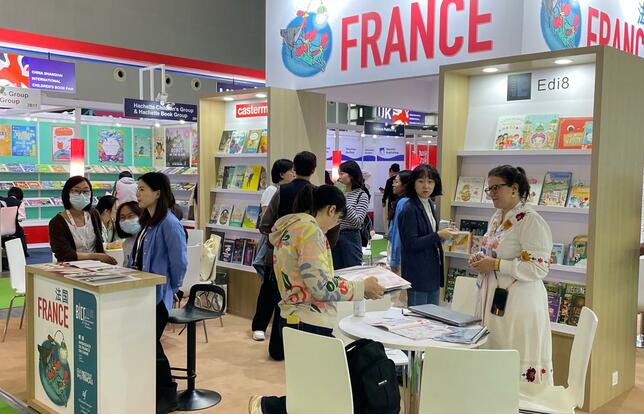 Les représentants de Bayard, de Nathan, de Glénat, d’Edi8, de Casterman, de L’École des Loisirs, des éditions Père Fouettard, de Versant Sud, et de Dargaud (qui bénéficie d’un bureau permanent à Shanghai) étaient accueillis, pour la première fois depuis 2019, sur un stand France de 90 m2, en marge d’un programme professionnel auquel Marion Glénat-Corveler, présidente du directoire des éditions Glénat, et Iris Declercq, responsable des droits étrangers de L’École des Loisirs, ont participé le 15 novembre. Des auteurs français étaient également du voyage, Paul Martin et Camille Roy à l’invitation de leurs éditeurs chinois, et Cécile Alix à l’invitation de l’ambassade de France en Chine.