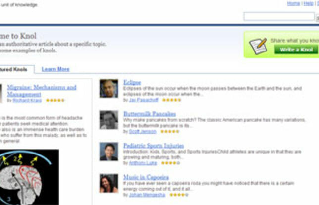 Cependant, Knol se différencie aussi par le contenu éditorial. Un même sujet peut ainsi accueillir plusieurs articles, qui se rapprochent plus d'une analyse ou d'une opinion que d'un format purement factuel. Ainsi pour Harry Potter, il y a (déjà) cinq pages différentes. Cela rend le portail assez confus et aussi mal hiérarchisé qu'une recherche simple sur … Google.
