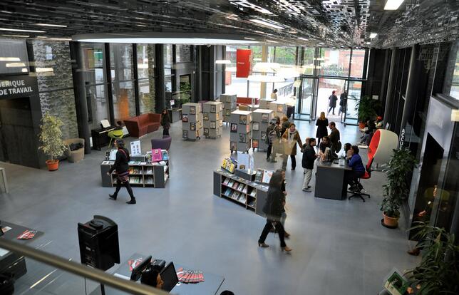 La Courneuve, en Seine-Saint-Denis, possède enfin, depuis le 11 avril, une grande médiathèque centrale baptisée Aimé-Césaire. Cette ville de 38 000 habitants, qui appartient à la communauté d’agglomérations de Plaine Commune, était en effet dotée de deux annexes de quartier mais seulement d’un petit local de 300 m2 en centre-ville ! L’attente en valait la peine : les usagers ont désormais à leur disposition un très bel équipement de 3 000 m2, dont 2 000 m2 d’espace public, installé dans l’ancienne usine Mécano remarquablement réhabilitée par les architectes du cabinet bordelais Flint. L’organisation sur les deux grands plateaux ouverts favorise la circulation fluide parmi les collections de livres, BD, CD et DVD, 50 000 documents en tout, dont un fonds en tamoul. La bibliothèque dispose d’un espace numérique, d’une salle polyvalente tout équipée, d’un auditorium de 78 places et, au premier étage, d’une magnifique terrasse de 290 m2. Des sessions pour les enfants et pour les adultes dans la salle de jeux vidéo et des ateliers de conversation pour les personnes qui apprennent le français font partie des premiers services proposés par la médiathèque. Avec ce nouvel équipement, le réseau de lecture public de Plaine Commune poursuit le plan d’aménagement de son territoire. En 2016, une médiathèque centrale ouvrira à Pierrefitte-sur-Seine, et une autre également en centre-ville, à Stains, en 2017. V. H.