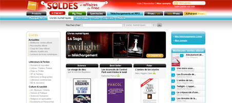 Ecran d'accueil de la rubrique livres numériques de la Fnac