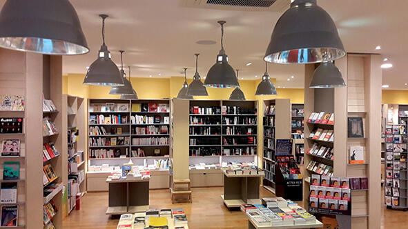 Elle aime à dire qu’elle "avait une brune et qu’elle voulait une blonde". Le 24 mai, Florence Veyrié a quitté le local qui abrite depuis onze ans sa Maison jaune, librairie généraliste de Neuville-sur-Saône, un cocon cosy et feutré "mais un peu sombre et sans vraiment beaucoup de jaune", pour rallier son nouvel espace, lumineux, aéré, de plain-pied, et "rempli de jaune", se réjouit la libraire. Installé dans un bâtiment neuf, entre la poste et la médiathèque, juste en face de l’ancienne librairie, le magasin exploite 250 m2, dont 200 m2 de surface de vente, contre 110 auparavant. Il offre une certaine ressemblance avec la Nouvelle Librairie Baume, à Montélimar, également tenue par Florence et François Veyrié : ils ont tous deux été agencés par l’architecte Pierre-Yves Gimenez. "Mais ici, nous avons veillé à ne pas trahir l’esprit de la première Maison jaune, qui dégageait une ambiance à laquelle les clients restent attachés", précise Florence Veyrié. Les luminaires, de grosses cloches métallisées, ont donc été conservés et un parquet à l’ancienne, "qui craque", a été posé, sorte de fil rouge caractérisant l’ensemble de l’aménagement.