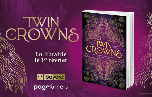 Sorti au Royaume-Uni en mai 2022, il s’est écoulé à 62 000 exemplaires et s’est installé dans les meilleures ventes jeunesse. Ce roman phénomène est signé par deux autrices à succès de la fantasy britannique, Catherine Doyle (Le Gardien des tempêtes, Bayard) et Katherine Webber (Dragon Mountain, Hachette Romans). Ces dernières ont imaginé les aventures d’un duo d’héroïnes avec une structure narrative novatrice, saluée par la critique. « Twin Crowns m’a ensorcelée ! », a écrit l’autrice Sarah J. Maas. C’est « addictif, sensuel, tendre et passionnant » décrit Kiran Millwood Hargrave tandis que ce premier tome est « un pur délice » pour The Guardian.