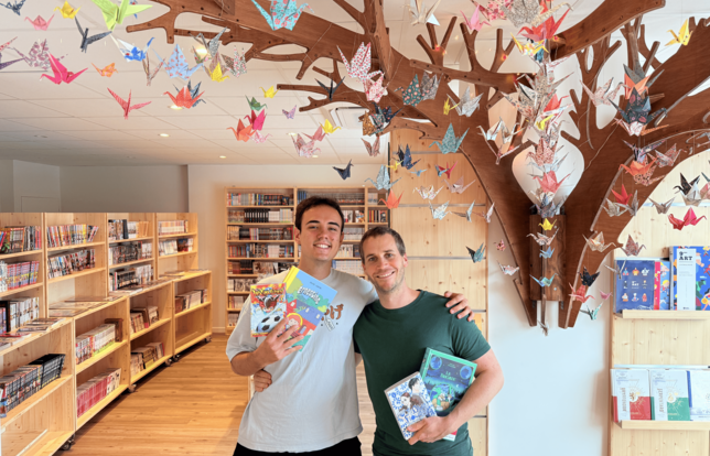 C’est en 2020, en pleine pandémie, que l’ex-professeur décide de quitter les bancs de l’Éducation nationale. « J’ai toujours voulu transmettre, mais j’ai décidé de le faire d’une autre manière », confie-t-il à Livres Hebdo. Formé à l’École de la librairie – où il rencontre Maceo Schwenk, qui l’accompagne aujourd’hui à mi-temps –, Nathan Berthelot prend le temps de mûrir son projet, déterminé à mettre le livre illustré à l’honneur, profitant de l’engouement alors croissant pour le 9ᵉ art.