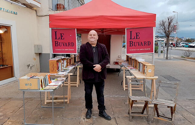Fort de son succès et de ses 25 000 euros de chiffre d’affaires dégagés en 2017 (1), Michel Vézina a relancé, le 25 janvier, son Buvard sur les routes françaises. La librairie itinérante consacrée à la littérature contemporaine québécoise a inauguré sa tournée en s’installant à Martigues. Sillonnant les environs de Marseille jusqu’au 3 février, elle visitera ensuite l’Ariège, puis remontera dans le Gard, et poursuivra sa route vers Bourg-en-Bresse et l’Ain autour du 20 février. Suivront l’Isère, Lyon, la Gironde, Paris, la Bretagne, le nord de la France et la Belgique, avant de terminer fin mai par la Drôme et l’Ardèche. "En 2017, nous avions manqué de temps pour satisfaire toutes les demandes reçues, j’ai donc décidé cette année de rester quatre mois", précise Michel Vézina, qui reprendra le 6 juin le chemin de son Salon, un pub-librairie qu’il a ouvert en janvier 2015 dans une commune rurale de l’est du Québec.