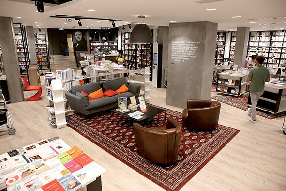 "Les Américains diraient que j’ai appliqué le concept ACD, sigle pour "Amazon can’t do"", lance Philippe Touron. La librairie, qu’il dirige dans le 15e arrondissement de Paris a rouvert ses portes le 31 août après deux mois de travaux. "Notre parti pris, se plaît-il à expliquer, a été de créer un lieu accueillant et chaleureux où les clients se sentent chez eux." Au centre des 420 m2 du magasin, se trouve ainsi un espace salon avec, évidemment, un divan, mais aussi deux fauteuils clubs et une table basse. Un vieux baby-foot est placé près du rayon BD. Des tapis sont disposés à différents endroits, et le point d’accueil est conçu comme un comptoir de bar avec une machine à café.