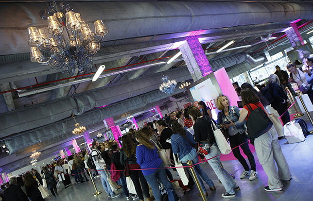 Lustres et lumière rose pour le festival new romance à la Cité de la mode à Paris. - Photo Olivier Dion