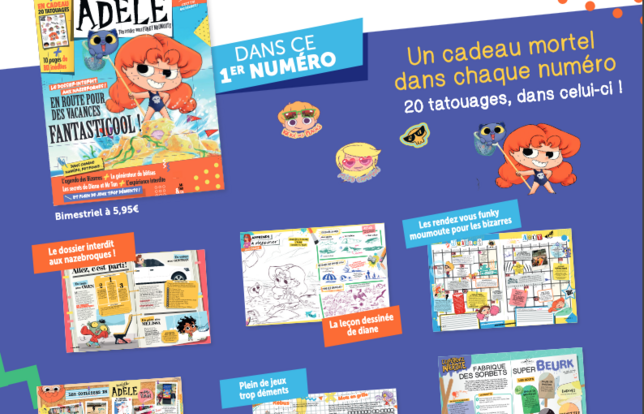Après un peu plus de dix ans d’existence, le phénomène Mortelle Adèle, imaginé par Antoine Dole (aka Mr Tan) avec Miss Prickly (à l'illustration pour les tomes 1 à 7 avant son remplacement par Diane Le Feyer en 2014), se décline en un nouveau magazine. Soutenu par le groupe Prisma Media, la parution de 52 pages sera publiée tous les deux mois. Le premier numéro est disponible en kiosque depuis ce mercredi 28 juin.