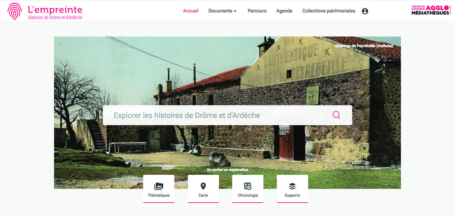Le 1er octobre, les médiathèques de Valence Romans Agglo ont lancé « L'Empreinte », leur bibliothèque numérique dédiée au patrimoine, qui rassemble près de 4 000 documents numérisés, cartes postales, photographies anciennes, plans, manuscrits, revues anciennes, en lien avec les départements de la Drôme et de l'Ardèche. L'originalité de ce nouveau portail patrimonial est d'être le premier en France à avoir été conçu dans une démarche d'expérience usager. L'objectif était de réussir à toucher non seulement les chercheurs et les amateurs éclairés, utilisateurs naturels de ce type de ressources, mais aussi le grand public. Une quinzaine de personnes représentant les trois catégories d'utilisateurs ont été interrogées. Les enseignements tirés de ce sondage ont conduit à choisir un nom évocateur, L'Empreinte, à privilégier dans un premier temps les documents visuels, témoignages de la vie quotidienne et des lieux familiers des habitants, à les mettre en scène et à favoriser un accès immédiat. « On a compris qu'il fallait passer par l'affectif, proposer des entrées thématiques car les approches trop scientifiques ne fonctionnent pas auprès du grand public », explique Lionel Dujol, chargé du développement numérique du réseau de lecture publique Valence Romans Agglo. Les chercheurs ne sont pas pour autant négligés et le portail répond à leurs attentes avec un moteur de recherche puissant et des métadonnées de qualité. Les utilisateurs ayant montré qu'ils souhaitaient non seulement consulter les documents, mais aussi pouvoir se les approprier, tous les documents, numérisés en haute définition, sont disponibles sous licence libre, téléchargeables et imprimables.
