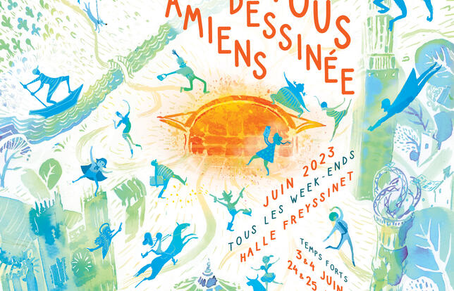 Mettre à l’honneur la bande dessinée. C’est la mission annuelle des Rendez-vous BD d’Amiens, qui réunissent artistes, professionnels et amateurs dans la capitale de la Picardie. Organisées par le pôle BD Hauts-de-France et l’association « On a marché sur la Bulle », les festivités autour du 9e art dureront un mois, du 3 au 25 juin. Près de 20 000 visiteurs et 150 auteurs seront attendus. Signée Chloé Cruchaudet, récipiendaire du prix du public Cultura lors du festival d’Angoulême (2014), l’affiche de la 27e édition est, d’après son illustratrice, un « hommage global à la ville » et une représentation de « l’enthousiasme qui émane de ces quelques jours de festival ».