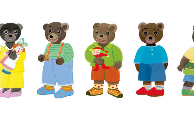 G.B : On nous a souvent dit que Petit Ours Brun était un peu ringard. Avec le temps, nous avons évidemment fait évoluer son apparence et modernisé certains aspects du dessin : cela fait longtemps, par exemple, que Maman Ours ne porte plus de tablier. Cependant, notre objectif n’a jamais été de rendre la série ultra-moderne, mais plutôt d’être dans une justesse du propos, des sensations et des sentiments de l’enfant. En nous replongeant dans des anciens épisodes, nous avons effectivement constaté des changements et en même temps, depuis ses débuts, Petit Ours Brun joue à la dînette, avec des poupées. Cela n’avait jamais posé question à l’époque, tandis qu’aujourd’hui, c’est peut-être perçu comme quelque chose de presque militant. Autre élément essentiel : Petit Ours Brun est brun. Autrement dit, tout le monde peut se projeter en lui. Les enfants blancs n’y prêtent aucune espèce d’attention, tandis que les enfants de couleur y trouvent un héros dans lequel se projeter. C’est sans doute l’une des raisons de son succès dans des milieux très divers.