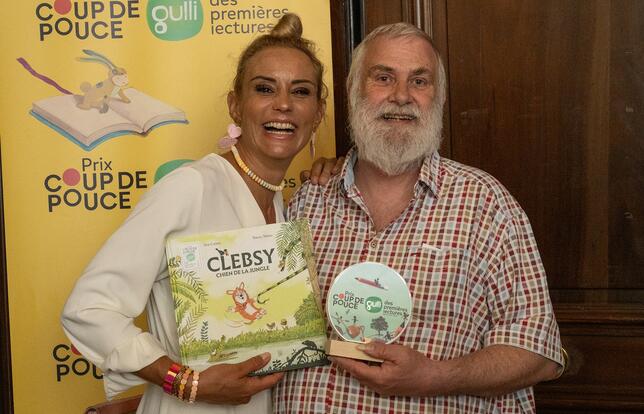 Noé Carlain et Thierry Manes remportent le prix Coup de pouce Gulli des premières lectures 2025 pour leur album Clebsy, chien de la jungle, publié aux éditions Didier Jeunesse. La récompense leur a été remise par Élodie Gossuin, marraine du prix, Nicole Notat, présidente de l’association Coup de Pouce, Martine Vassal, présidente de la Métropole Aix-Marseille-Provence, et Frédéric Vigouroux, maire de Miramas (Bouches-du-Rhône), le jeudi 12 juin, lors d’une cérémonie organisée dans la commune.