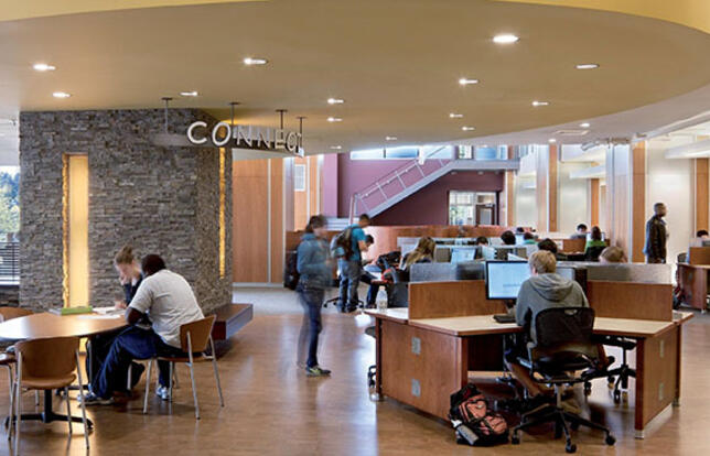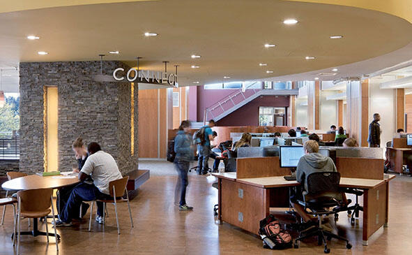 La bibliothèque de Pierce College Fort Steilacoom aux Etats-Unis. - Photo DR