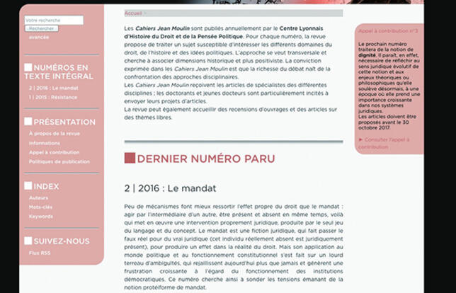 Les Cahiers Jean Moulin, l’une des premières revues mises en ligne par la pépinière des bibliothèques de l’université Jean-Moulin Lyon-3.