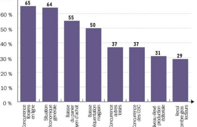 Les libraires auraient-ils le sentiment d'avoir touché le fond ? Rien n'est moins sûr. Pourtant notre sondage Livres Hebdo/I+C, réalisé en avril, témoigne d'un surprenant regain d'optimisme. Alors qu'entre 2006 et 2010 le nombre de libraires "confiants dans l'évolution de l'activité de leur point de vente » n'a cessé de décroître, il retrouve cette année des niveaux plus élevés dans les différents circuits de distribution, à l'exception des "clubs et grands magasins ». Ainsi, 45 % des libraires de premier niveau sont redevenus confiants alors que leur proportion, de 51 % en 2006 puis 49 % en 2008, était tombée à 19 % en 2010. Malgré les difficultés que traverse leur circuit, la proportion de responsables de grandes surfaces culturelles (GSC) se déclarant confiants passe de 50 % en 2010 à 73 %, soit presque le niveau record enregistré en 2006 de 76 %. Dans une moindre mesure, celles des responsables d'hypermarchés et des libraires de second niveau atteignent respectivement 53 % et 41 % (contre 40 % pour les premiers et 32 % pour les seconds en 2010). Malgré un début d'année difficile, ce regain de confiance se retrouve dans les prévisions de CA. Ainsi 45 % des libraires de premier niveau (contre 9 % en 2010) prévoient une hausse en 2012. De même pour 40 % des responsables de GSC, 50 % des responsables d'hypers et 50 % des libraires de second niveau. Beaucoup de libraires interrogés misent cependant sur une stabilité de leur CA et ne cachent pas avoir de nombreux sujets de préoccupations (voir graphique). Il reste que, témoignant de leur confiance mais aussi de leur volontarisme, les intentions d'investissement sont cette année plus nombreuses qu'en 2010. Dans les GSC, 17 % des responsables disent avoir l'intention d'investir (contre 10 % en 2010), en particulier dans des agrandissements de magasin. Dans les librairies, les efforts porteront sur les rénovations, et dans les hypers, plus économes toutefois qu'en 2010, sur les forces de vente.