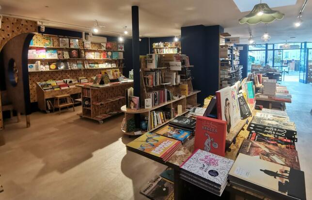 Généraliste, la librairie de 93 m2 propose 10 000 références avec un assortiment d’incontournables – littérature francophone et étrangère, BD, mangas, livres pratiques –, complété d’un important espace jeunesse et d’un fonds de sciences humaines et sociales. Des ouvrages féminisme et genre, écologie et décroissance, travail et luttes sociales investissent aussi les étagères, divulguant une couleur politique assumée. Les deux libraires ont aussi à cœur de porter les petites maisons d’édition – Commun, La Peuplade, Le Tripode –, "noyées par la grosse masse de productio