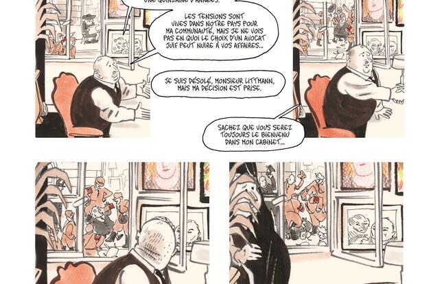 Pour tenir de bout en bout son procédé malin de caméra subjective, véritable gageure graphique, Luz multiplie les astuces. Parfois, le tableau est décroché, déplacé, malmené, empaqueté, et les cadrages et les cases suivent le mouvement. Ou bien il fait nuit et on ne distingue que ce qui se passe à l'extérieur, dans la rue éclairée. Les gros plans sur les visages qui regardent le tableau se succèdent, tour à tour dubitatifs, haineux, craintifs, désespérés ou enthousiastes. La force du dispositif réside dans le caractère inanimé, silencieux, innocent de ce « personnage » principal, observateur implacable de ce qui se trouve devant lui. La douleur, la folie et la perversité des hommes n'ont besoin d'aucun commentaire pour se dévoiler. Avec cet album très précisément documenté, à la fois biographie d'un peintre, d'un tableau et de ses détenteurs successifs, Luz a trouvé une manière originale et passionnante de plonger dans une époque tragique et dans les coulisses de l'art.