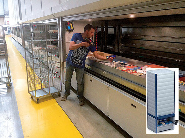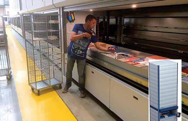 "Il n’existe pas de presse numérique capable d’imprimer tous les types de livres des éditeurs que nous distribuons. D’autre part, la technologie et les prix évoluent vite. Faire appel à plusieurs imprimeurs extérieurs permet de couvrir tous les besoins, dans les meilleures conditions", assure Dominique Wettstein. L’entretien de mini-stocks, de 5 à 50 exemplaires, résout le problème du délai de livraison entre les imprimeries et les deux sites de distributions de Madrigall (Lagny-sur-Marne, en Seine-et-Marne ; et Sermaises, dans le Loiret). Ces mini-stocks sont entreposés dans des armoires rotatives (sept à la Sodis), dont les bacs empilés peuvent contenir 100 000 volumes, sur un encombrement au sol de 12 m2. Ils sont alimentés en courts tirages de quelques dizaines d’exemplaires. L’impression à l’unité n’est pas exclue, mais limitée pour des raisons de coûts.