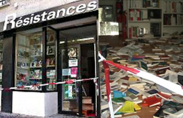 La librairie Résistances, connue pour son soutien au peuple palestinien et d'une manière générale aux luttes des peuples du tiers-monde, a été vandalisée le 3 juillet dernier par un groupe de cinq hommes cagoulés et armés de bouteilles d'huile et de bâtons. Après avoir cassé le matériel informatique et jeté de nombreux livres par terre pour les arroser d'huile, les agresseurs sont repartis en revendiquant clairement leur appartenance à la Ligue de défense juive (LDJ).