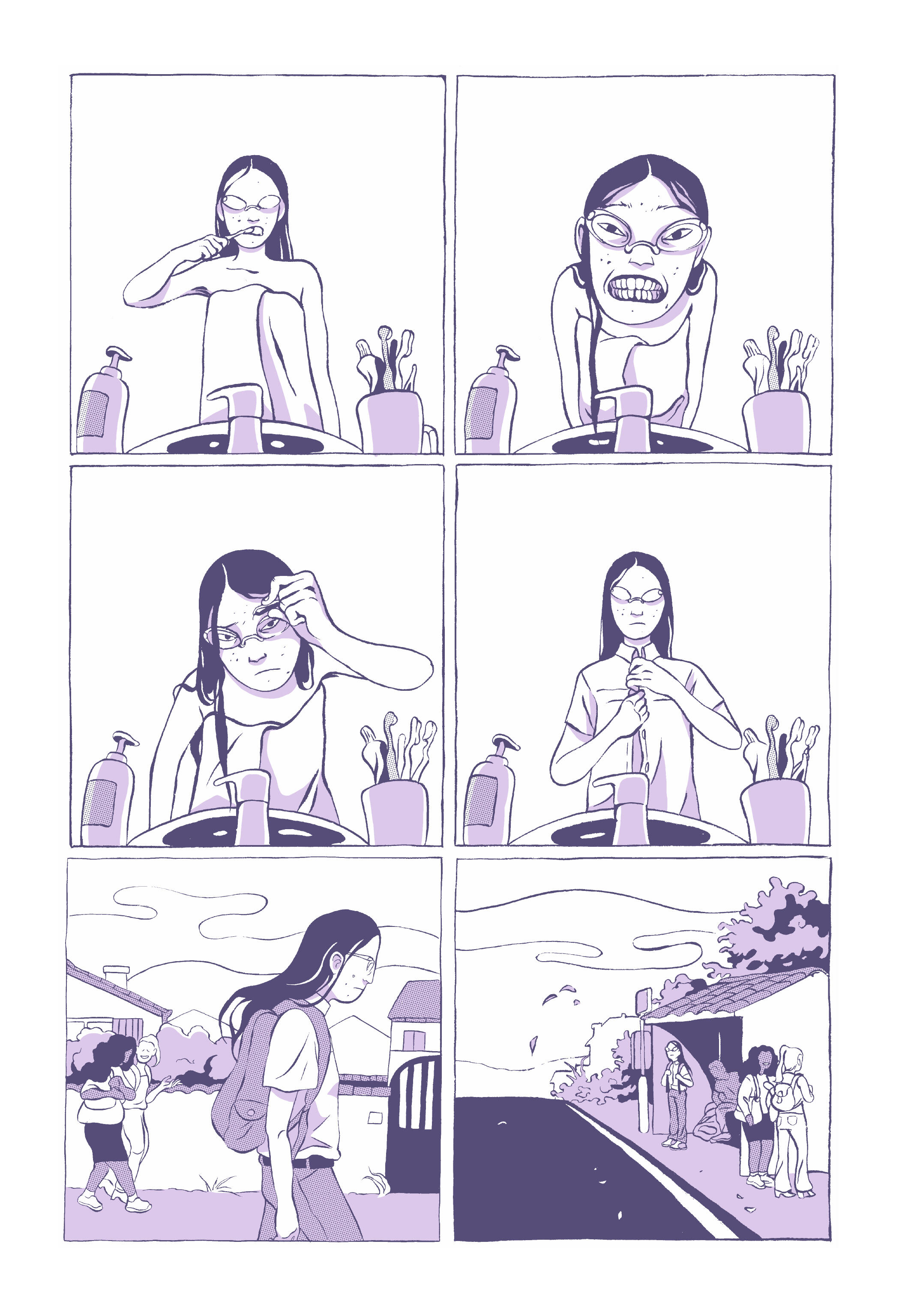Trou noir. Lia est une jeune fille renfermée. Elle est d'autant plus déprimée et angoissée que son amoureuse Éva, avec qui elle aimait se réfugier dans la forêt, s'est soudain volatilisée au début de l'été. Avant sa disparition, Lia avait remarqué que son amie avait à la cuisse une étrange déformation dans laquelle elle enfonçait son poing. Alors qu'elle rentre en seconde dans un nouveau lycée, Lia reproduit ce geste qui lui permet de puiser l'énergie dont elle a besoin pour s'ouvrir au monde. Lia sympathise alors avec la populaire Ingrid, dont l'amitié n'est toutefois peut-être pas désintéressée. Pour son premier album, Marianne Garnier-Surles fait preuve d'une belle maîtrise narrative et graphique. Réel, fantastique et suspens sont parfaitement imbriqués pour former un récit énigmatique. Son trait organique et sinueux se prête aussi bien à représenter les corps torturés que la nature inquiétante. À l'aide de dialogues vivants, l'autrice dépeint avec réalisme le lycée et son cortège de moqueries, de jalousies, de rumeurs, de flirts. La distorsion des corps et le mal-être adolescent qui constituent la matrice de son histoire rappellent immanquablement Black Hole de Charles Burns. Le trou noir, ici, c'est celui qui aspire ces jeunes filles mal dans leur peau, aux prises avec leur orientation sexuelle, la transformation de leurs corps, la violence et le harcèlement. Un album réussi sur le passage à l'âge adulte, dans lequel Marianne Garnier-Surles se montre digne de ses influences.