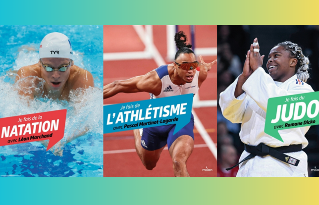 Spécialiste de la jeunesse, la maison d’édition Milan, propriété de Bayard, a lancé, mercredi 22 mai, « Je fais du sport avec », une nouvelle collection entièrement consacrée à la pratique sportive pour les enfants, dès 7 ans. Les trois premiers titres du label, Je fais du judo avec Romane Dicko, Je fais de l’athlétisme avec Pascal Martinot-Lagarde ainsi que Je fais de la natation avec Léon Marchand ont été coécrits par Myriam Alizon, ancienne grande reportrice de l’Équipe et fondatrice du magazine de sport pour enfants A fond !, avec les sportifs français concernés.