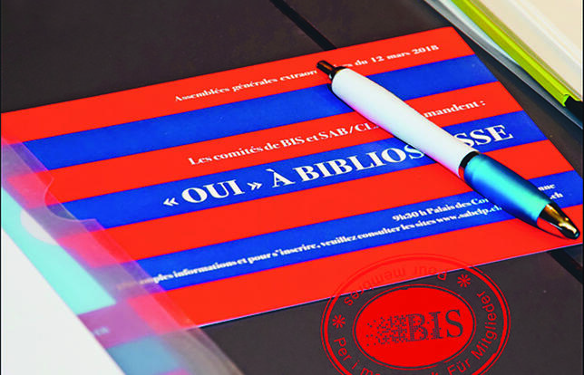 Le 29 août, les deux grandes associations professionnelles suisses, BIS (Bibliothek Information Schweiz) et SAB-CLP (Schweizerische Arbeitsgemeinschaft der allegemeinen öffentlichen Bibliotheken-Communauté de travail des bibliothèques suisses de lecture publique) ont fusionné pour donner naissance à une organisation unique, Bibliosuisse. Cette nouvelle structure, qui entrera officiellement en fonction au 1er janvier 2019, porte des enjeux importants pour les professionnels suisses, notamment sur trois grands sujets : l'harmonisation du secteur professionnel de l'information et de la documentation, le renforcement des actions de lobbying et la formation.