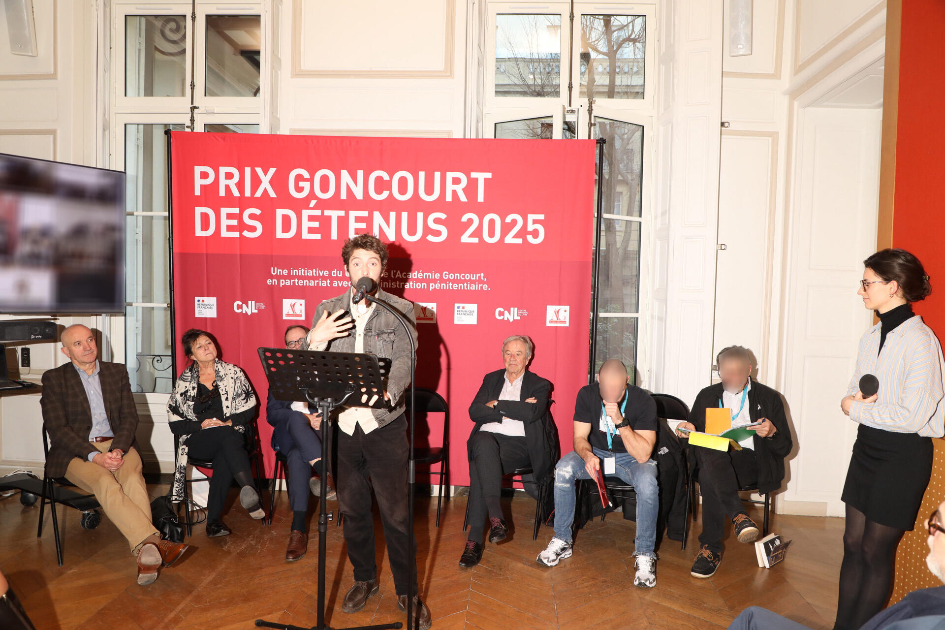 Dans la grande salle du Centre national du livre (CNL) où était organisée la remise du prix Goncourt des détenus ce mardi 16 décembre, le lauréat Paul Gasnier, couronné pour La collision (Gallimard), a reçu sa récompense entouré des membres de l’Académie Goncourt, de trois autres auteurs de la première sélection (Guillaume Poix, Alfred de Montesquiou et David Deneufgermain), de deux détenus membres du jury ainsi que d'Antoine Gallimard, président du groupe Madrigall (Gallimard, Flammarion…), et Régine Hatchondo, présidente du CNL.