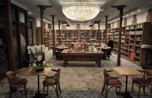 Pourvue d'un bar et d'une scène sur laquelle trône un piano à queue, la librairie revendique 280 m² de surface, dont 110 m² dédié au livre.- Photo LA DISTILLERIEPour télécharger ce document, vous devez d'abord acheter l'article correspondant.