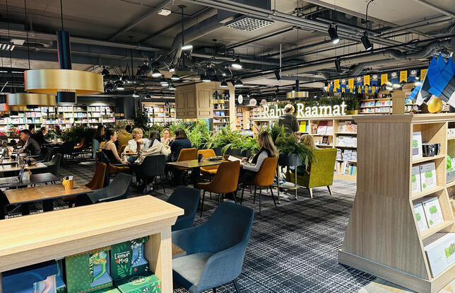 La chaîne a poussé plus loin le concept de librairie double fonction. Elle a inauguré en 2019 sa première librairie-restaurant dans le quartier créatif de Telliskivi à Tallinn, où flânent familles et touristes. Là aussi, c'est sa filiale Literaat qui est aux manettes de la cuisine. Exception ici : une unique entrée permet d'abord de découvrir le restaurant avant d'apercevoir, au fond du magasin, les rayonnages de livres. Et, pour asseoir sa notoriété, Rahva Raamat dispose aussi d'un espace à l'aéroport de Tallinn avec des fauteuils et étagères fonctionnant comme une boîte à livres internationale. Chaque voyageur est invité à lire un livre, à emprunter un titre ou à en déposer un avant d'embarquer.